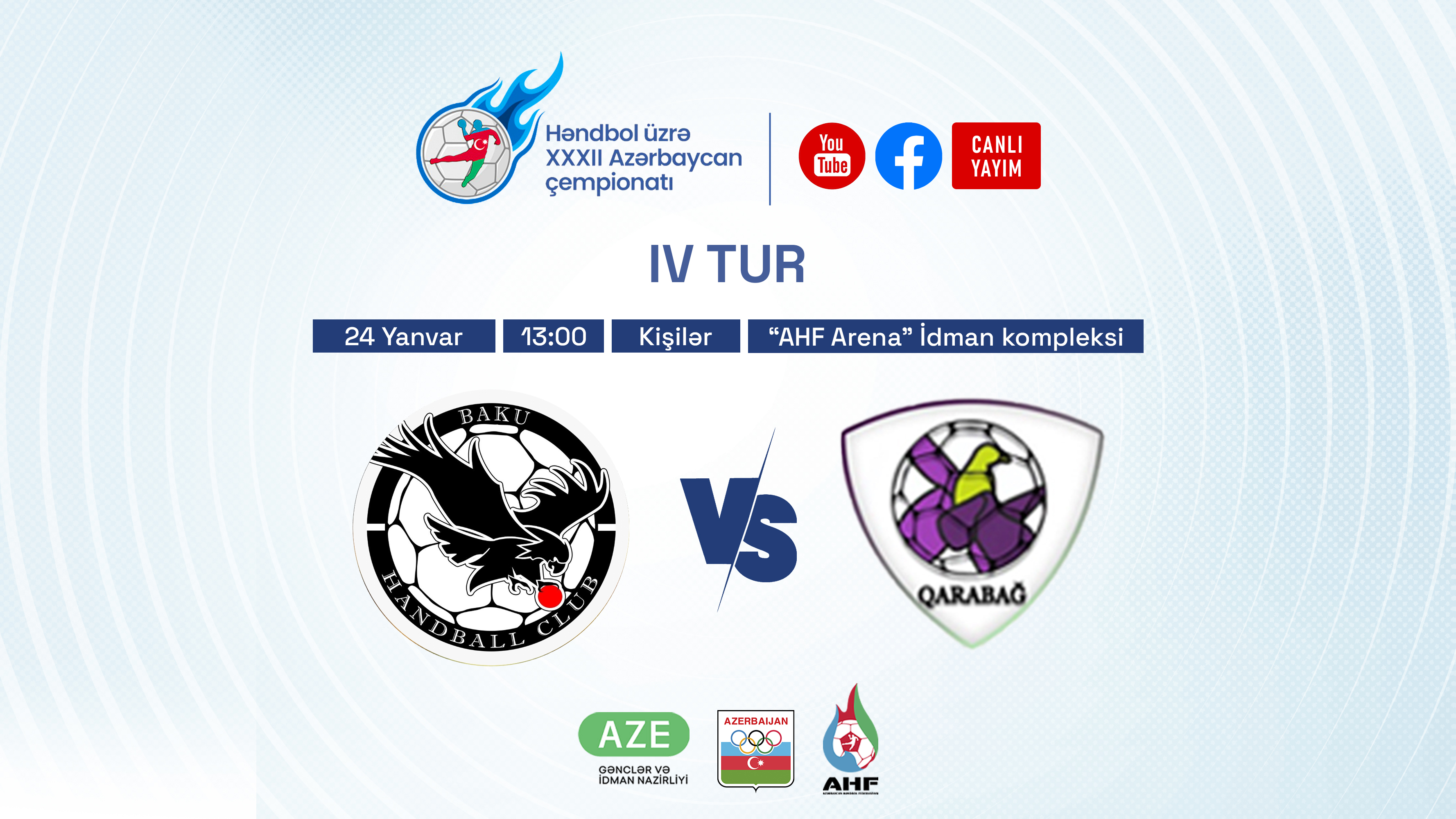 “AHF Arena” İdman kompleksində təşkil olunacaq matç Azərbaycan Həndbol Federasiyasının “Youtube” kanalı və rəsmi “Facebook” səhifəsində canlı yayımlanacaq.