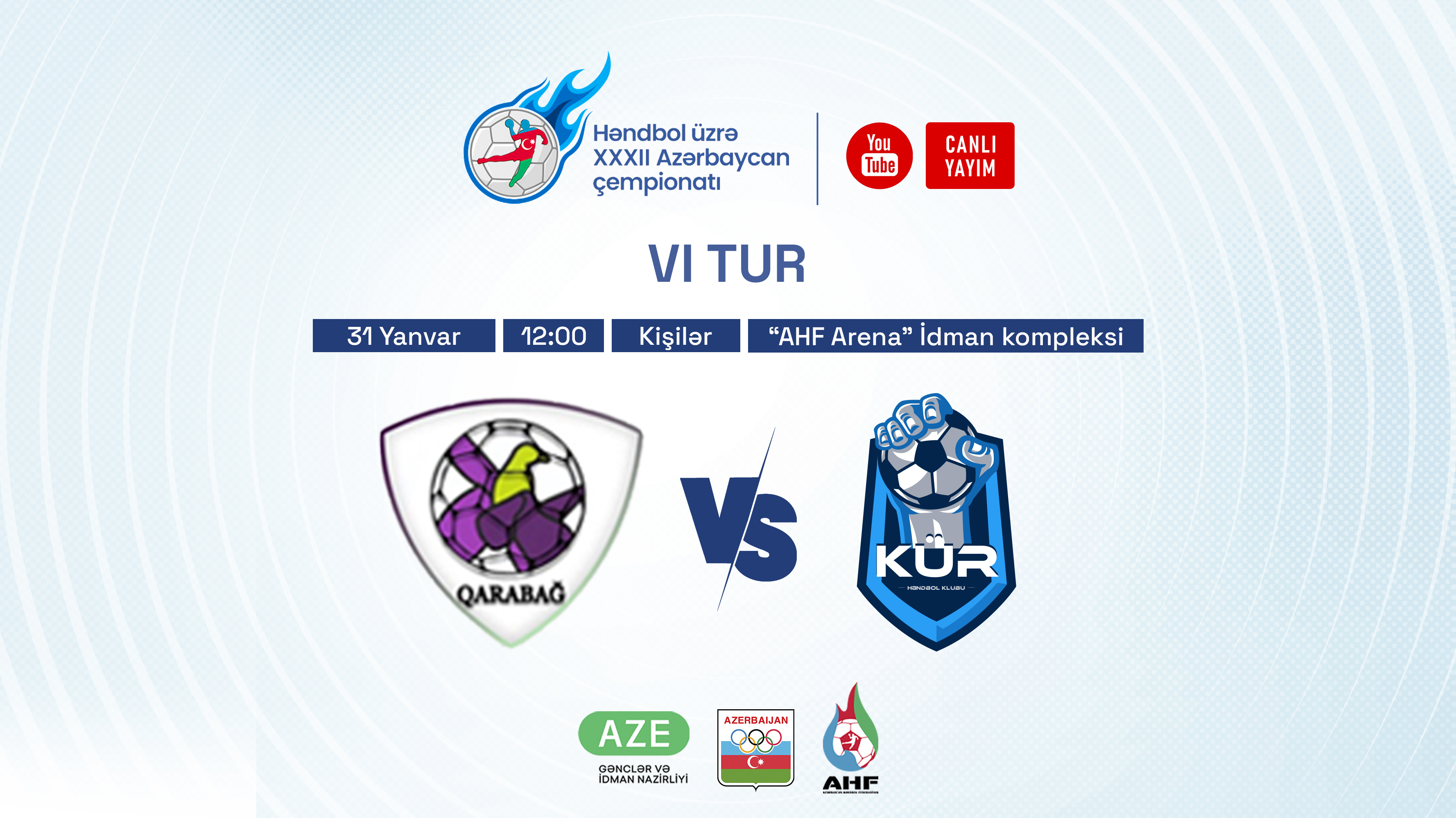 Maraqla gözlənilən görüş yanvarın 31-i saat 12:00-da başlayacaq. "AHF Arena" İdman Kompleksində keçiriləcək qarşılaşma Azərbaycan Həndbol Federasiyasının rəsmi Youtube kanalında canlı yayımlanacaq.
